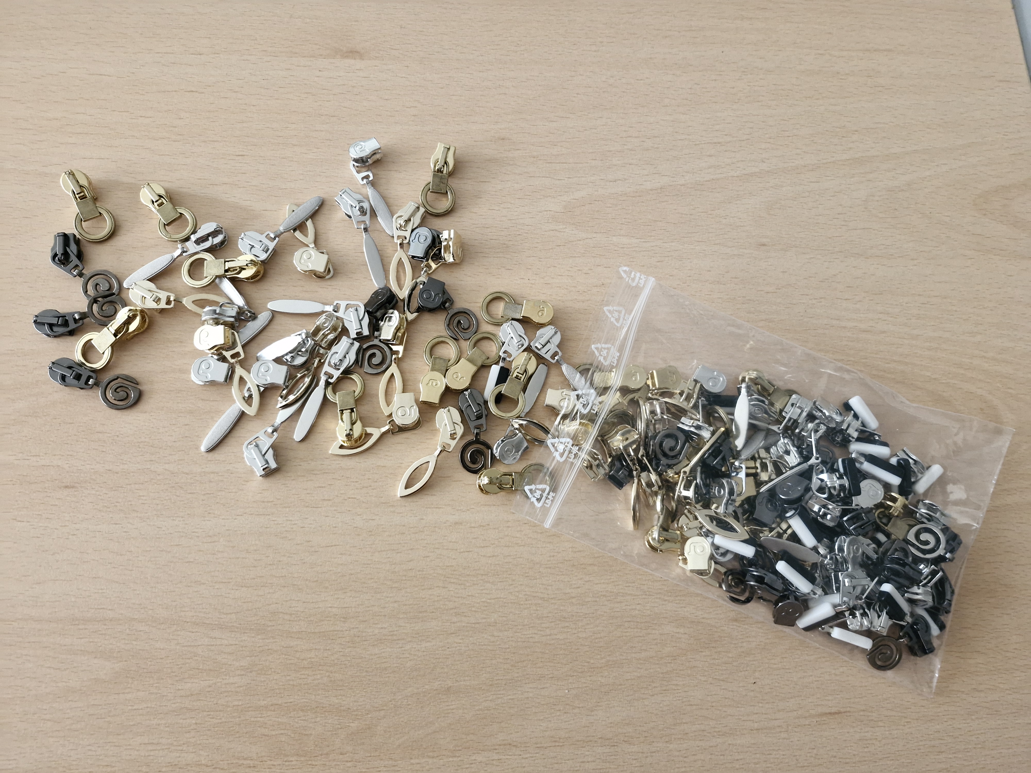 Bunt gemischt und voller Vielfalt – unsere Restposten Schieberpakete passend zu unserer Meterware bieten eine spannende Auswahl an Oberflächen und Formen für Ihre Anwendungen. Bei den auf dem Bild dargestellten Anhängern handelt es sich um Musterbeispiele.